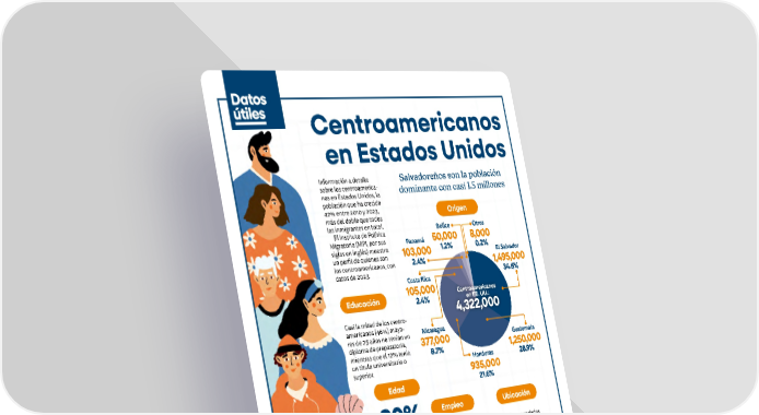 98 Enero | Febrero 2026 abasto.com Centroamericanos en Estados Unidos Salvadoreos son la poblacin dominante con casi 1.5 millones Informacin a detalle sobre los centroamerica- nos en Estados Unidos, la poblacin que ha crecido 42% entre 2010 y 2023, ms del doble que todos los inmigrantes en total. El Instituto de Poltica Migratoria (MPI, por sus siglas en ingls) muestra un perfil de quienes son los centroamericanos, con datos de 2023. Otros 8,000 0.2% Centroamericanos en EE. UU.: 4,322,000 El Salvador 1,495,000 34.6% Guatemala 1,250,000 28.9% Honduras 935,000 21.6% Nicaragua 377,000 8.7% Costa Rica 105,000 2.4% Panam 103,000 2.4% Belice 50,000 1.2% Ubicacin Empleo Educacin Edad Origen Los cinco condados principales para los centroamericanos fueron 1. Los ngeles, California 2. Harris, Texas 3. Miami-Dade, Florida 4. Dallas, Texas 5. Prince George, Maryland En 2019-2023, tres ciudades albergaban a un tercio de todos ellos: las reas metropolitanas de Los ngeles ( 14% ), Nueva York ( 10% ) y Washington, DC ( 8% ). Casi la mitad de los centro- americanos (46%) mayo- res de 25 aos no tenan un diploma de preparatoria, mientras que el 12% tena un ttulo universitario o superior. 80% de los inmigrantes centroamericanos tenan edad de trabajar (de 18 a 64 aos) 73% es la tasa de participacin en la fuerza laboral de los inmigrantes centroamericanos. Dentro de este grupo, los guatemaltecos y salvadoreos ( 74% cada uno) y los hondureos ( 73% ) tenan las tasas de participacin ms altas, mientras que los panameos tenan la ms baja ( 58% ). Fuente: Migration Policy Institute