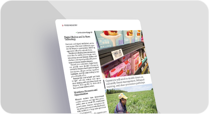 62 January | February 2026 abasto.com Operators will need to double down on culturally fluent management, bilingual training, and clear promotion pathways The most successful Hispanic food retailers will integrate in-store experiences, including events, tastings, and seasonal or regional Hispanic product bundles. They will offer mobile promotions, creator partnerships, and lo- yalty programs with gamified rewards to encourage repeat visits, celebrate cultural moments, and connect in shoppers preferred language and channels. It promises to be another very busy year! Digital Shelves and In-Store Technology Electronic and digital shelf labels are be- coming one of the most visible tech upgra- des for Hispanic supermarkets, following aggressive rollout by national chains. Retailers are adopting these systems to re- duce labor for weekly price changes, main- tain pricing accuracy between shelves and checkout, and respond quickly with promo- tions to inflation-sensitive shoppers. Beyond price automation, digital labels can provide more detailed information critical for Hispanic food buyers: bilingual descriptions, allergen and key ingredient highlights, and QR codes linking to reci- pes and loyalty offers. Features like pick-to-light and stock- to-light will also reshape store opera- tions, helping staff and pickers locate top Hispanic SKUs quickly for click-and-co- llect and home delivery orders. Workforce Pressures and Opportunities Hispanic workers have demonstrated notable resilience and high labor partici- pation, even as overall U.S. employment growth slows. However, immigration-dri- ven policy measures are reducing the avai- lable workforce in large-scale agriculture and food industries. For Hispanic retailers, this presents a para- dox: a strong, younger front-end workforce, paired with chronic shortages and higher costs upstream, creating risks of stockouts especially in fresh produce and meat. Inside stores, 2026 will bring more ur- gency around retention, skill-building, and flexible scheduling. Retailers will rely on leaner teams to execute highly techno- logical, omnichannel workflows. Marketing, Merchandising, and Loyalty With spending growth stagnant, retailers must increase precision marketing and differentiated merchandising, especially around value. Flyers and displays will need to highli- ght affordable meal solutions. Private-label staples and club-size pac- kaging help multigenerational house- holds stretch budgets without sacrificing cultural identity. Continuation of page 60 FOOD INDUSTRY Action Plan for 2026