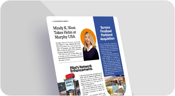 20 January | February 2026 abasto.com Chevron Announces Leadership Changes Mindy K. West Takes Helm at Murphy USA Murphys Board of Directors announced that Mindy K. West, formerly the Chief Operating Officer, has now assumed the roles of President and Chief Executive Officer (CEO). Ms. West has also joined the companys Board of Directors. Ms. West succeeds Andrew Clyde, who previously served as President and CEO and retired from the Board of Directors on December 31, 2025. Sunoco Finalized Parkland Acquisition Sunoco LP officially closed the ac- quisition of Parkland Corporation on October 31, 2025. This major indus- try transaction, which concluded last quarter, solidified the expansion of the Sunoco enterprise. As part of the deal, Parkland sha- res were delisted from the Toronto Stock Exchange on November 4, 2025. Investors received Common Units of SunocoCorp LLC (SUNC), which successfully began trading on the New York Stock Exchange on No- vember 6, 2025. This completed the public steps of the merger, marking a significant structural shift in the fuel and convenience store sector as we enter the new year. In the fall of 2025, Pilot, the largest travel center network, invested significantly to improve the experience for all drivers. The company focused on physical upgrades, digital enhancements, and expansion of its EV charging network. Pilot completed 14 curb-to-counter re- novations and added 11 new dealer loca- tions across its network since July 2025, expanding convenience for drivers na- tionwide. Digitally, Pilot launched mobile orde- ring in select markets, aiming for nearly 400 locations by year-end, and renamed its app to the Pilot app for better user in- tuition. Pilots Network Enhancements Chevron Corporation an- nounced the appointment of Amit R. Ghai as Contro- ller of Chevron, effective March 1, 2026. Ghai will succeed Alana K. Knowles, in anticipation of her ex- pected retirement from Chevron in April 2026, af- ter 38 years of service. Ghai will lead Chevrons accounting policy, corpo- rate and external finan- cial reporting, internal controls, global business services and digital finan- ce teams. He will report to Eimear Bonner, Chevrons Vice President and Chief Financial Officer. Fact Ghai began his career in the industry in 1996 and joined Chevron in 2004 CONVENIENCE BRIEFS