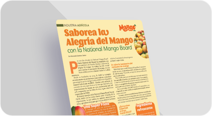 INDUSTRIA AGRÍCOLA Saborea la Alegría del Mango con la National Mango Board Por Hernando Ramírez-Santos or casi dos décadas la National Mango Board objetivo de aumentar la demanda por ese (Junta Nacional del Mango) ha inspirado a los producto”, explicó Ojeda. consumidores en Estados Unidos a saborear la alegría del mango. Su trabajo ha sido crucial En alza la tendencia del para cambiar la percepción del mango, de una consumo de mango Pfruta exótica a ser un alimento básico en la dieta Ojeda destacó que cuando la National Mango Board comenzó su americana. trabajo, en 2005, se importaban a EEUU alrededor de 62 millones Desde su fundación en 2005, la NMB ha trabajado de cajas de mango. Hoy en día, se importan casi 140 millones de estrechamente con productores, importadores y minoristas cajas de 4 kilogramos. para asegurar que los mangos de alta calidad estén disponibles “Hace dos décadas los precios del mango eran mucho más altos y durante todo el año en EEUU. Gracias a este esfuerzo, el las cantidades del producto era muchísimo menor. Y por supuesto, consumo de esta super fruta se ha más que duplicado y las el nivel de conocimiento del consumidor sobre la versatilidad de la importaciones de mango en 2023 aumentaron más del fruta y sus propiedades alimenticias era prácticamente nulo. Por 32% comparadas con las cifras de 2019, según estadísticas eso la gente no lo consumía”, dijo Ojeda. comerciales del USDA. Pero con el trabajo de la NMB de educar al consumidor y con El director ejecutivo de la National Mango Board, Ramón el apoyo de las redes sociales, la organización ha logrado entrar a Ojeda, habló con la revista Abasto sobre el trabajo de la nuevos mercados. organización, la cual celebra su vigésimo aniversario en “El mango, con esa versatilidad de tener diferentes variedades, de 2025, y qué planes tiene para que el rey no o昀椀cial de las frutas distintos países, tenerlo disponible todo el año y que sea de buena calidad, pues bueno, eso ha sido fundamental para que la demanda UUnna Sa Suuppeer Fr Frruuttaa y el consumo de la fruta vaya en aumento”, resaltó Ojeda. El mango no solo es delicioso, sino también nutritivo. Es rico en vitamina ¿Qué países C, vitamina A, el folato, la vitamina E y exportan IInnggrreeddieiennttee varias vitaminas del complejo B. También mango es una buena fuente de 昀椀bra dietética y hacia EEUU? refrescante antioxidantes. Estos nutrientes refuerzan En la actualidad, el 99% el sistema inmunológico y promueven una del mango que se consume El mango es increíblemente piel saludable. en Estados Unidos viene de versátil en la cocina. Puede seis países productores. usarse en ensaladas, llegue a las mesas de más • México postres, batidos y platos consumidores en EEUU. principalmente principales. Su sabor dulce “Somos una Junta con el 67%. y ácido añade un toque de promoción agrícola, • Perú, segundo especial a cualquier receta. pues lo que hacemos es con el 14%. Combinado con vegetales educar al consumidor • Brasil 9%. frescos y proteínas ligeras, y educar, entrenar y • Ecuador 4%. crea platos ligeros y proveer información • Guatemala 3%. nutritivos. de investigación a los • República Mezclado con yogur o productores y a la cadena Dominicana leche, ofrece una bebida de suministro para que casi un 2%. energética y deliciosa. todo el mango llegue en El resto se importa de Usado en salsas o óptimas condiciones otros países. El 1%, es el marinados, aporta un sabor a las manos de los mango que se cultiva en exótico. consumidores, con el Puerto Rico, California, Un mundo el sur de Texas, el sur de de recetas California y Hawaii. en www. Sigue en la página 70. mango.org 6868 JJUULLIIOO//AAGGOOSSTTO 2O 200224 4 AABBAASSTOTO..CCOOMM