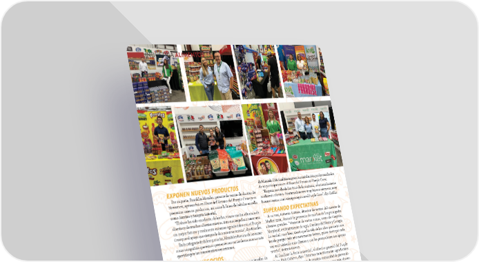 INDUSTRIA ALIMENTOS de Manzela USA también expresó su satisfacción por los resultados EXPONEN NUEVOS PRODUCTOS de su participación en el Show del Verano del Purple Crow. Por su parte, Franklin Morales, gerente de ventas de distrito de “Empezamos desde las 8:00 de la mañana, afortunadamente Novamex, aprovechó en Show del Verano del Purple Crow para recibiendo clientes. Afortunadamente muy buenos números, muy presentar nuevos productos, así como la línea de bebidas estrella buenas ventas como siempre aquí con el Purple Crow”, dijo Cuéllar. como Jarritos y Sangría Señorial. “El show ha sido excelente, de hecho, vimos mucha a昀氀uencia de SUPERANDO EXPECTATIVAS clientes y de muchos clientes nuevos. Esto nos impulsa a tener una A su vez, Antonio Gómez, director de ventas del sureste de un mejor futuro y realmente estamos agradecidos con el Purple Market 5201, destacó la presencia de muchos de los principales Crow por el apoyo que siempre le da a nuestras marcas”, dijo Morales. clientes grandes. “Vinieron de varias zonas, tanto de Virginia, En la categoría de dulces y snacks, Mondelez fue una de las nume- Maryland, evidentemente de aquí, Carolina del Norte y Georgia. rosas compañías que estuvo presente con varias de sus marcas más La verdad, muy bien, siento que ha sido de los años que mejor nos queridas por los consumidores mexicanos. ha ido porque cada año notamos un brinco, quiere decir que cada vez está viniendo más clientes y con las promociones nos apoyan BUENOS NEGOCIOS mucho”, destacó Gómez. Juan Ramón, Jay, García, gerente de ventas nacionales de Al 昀椀nalizar la feria comercial, el director general del Purple Mondelez USA, dijo que no tuvo un momento de respiro durante Crow, Rick Calabro, dijo: “Estamos increíblemente agradecidos el Show del Verano del Purple Crow. por el inquebrantable apoyo de nuestra comunidad de proveedo- “Fue un gusto poder colaborar con el Purple Crow aquí en Carolina res y esperamos seguir creciendo a su lado. Nuestro más sincero del norte. Estoy a cargo de lo que es Ricolino, Vero y Coronado con agradecimiento a todos los que han contribuido, incluidos nuestros Mondelez y muy contento de estar aquí. Las ventas fueron bastante proveedores, clientes y empleados. Vuestras contribuciones han sido buenas. Ese es el mejor aliciente para los que venimos de fuera, inestimables para crear un evento inolvidable y agradable que ha el poder vender pues al 昀椀nal del día es a lo que venimos”, destacó superado todas nuestras expectativas. En nombre de todos los que García. formamos el Purple Crow, ¡gracias!”. En el stand vecino, Esteban Cuéllar, director nacional de ventas 3030 JJUULLIIOO//AAGGOOSSTTO 2O 200224 4 AABBAASSTOTO..CCOOMM