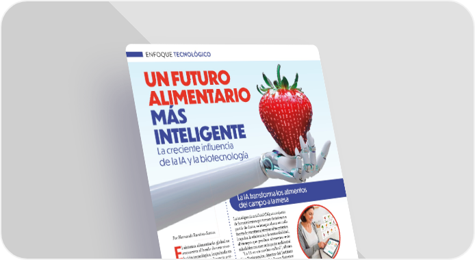 26 JULIO / AGOSTO 2025 ABASTO.COM ENFOQUE TECNOLÓGICO ENFOQUE TECNOLÓGICO UN FUTURO ALIMENTARIO MÁS INTELIGENTE La creciente influencia de la IA y la biotecnología Por Hernando Ramírez-Santos E l sistema alimentario global se encuentra al borde de una revo- lución tecnológica, impulsada en gran medida por la inteligencia arti- ficial y las biotecnologías avanzadas. Estas innovaciones prometen ofrecer un enfoque más eficiente, sostenible y personalizado para alimentar a una población creciente, según recientes análisis de líderes de la industria e investigaciones académicas. Desde la optimización de los rendimientos de los cultivos hasta la creación de nuevas proteínas, la tecno- logía está remodelando cada etapa de la cadena de suministro de alimentos. Los expertos creen que estos avan- ces abordarán desafíos críticos como la seguridad alimentaria, el impacto ambiental y las demandas cambiantes de los consumidores. La inteligencia artificial (IA), un conjunto de herramientas que toman decisiones a partir de datos, se integra ahora en cada faceta de nuestros sistemas alimentarios. Impulsa la eficiencia y la sostenibilidad, al tiempo que produce alimentos más saludables con menor impacto ambiental. "La IA es un cambio radical", afirma Ilias Tagkopoulos, director del Instituto de Inteligencia Artificial para Sistemas Alimentarios de Próxima Generación (AIFS) en UC Davis. "Permite a la industria alimentaria crear soluciones innovadoras y alineadas con los objetivos de sostenibilidad y escalabilidad". Las aplicaciones impulsadas por la IA abarcan todo el ciclo de vida de los alimen- tos. En la agricultura, la IA combina vastos conjuntos de datos —incluidas imágenes de plantas, insumos de agua y fertilizantes, y condiciones ambienta- les— para proporcionar a los agricultores pronósticos predictivos, mejorando su conocimiento y experiencia. Por ejemplo, la tecnología impulsada por IA analiza miles de imágenes de videos, ofreciendo conocimientos que las inspecciones tradi- cionales no detectan. Más adelante en la cadena de sumi- nistro, la IA minimiza la pérdida de alimentos. Transforma los procesos dentro de las envasadoras de alimentos, donde la automatización ya prospera. La IA ayuda a examinar la calidad de los productos y agiliza las operaciones, avanzando más allá del análisis de datos humano hacia una mayor eficiencia. En última instancia, la IA impacta a los consumidores individuales a través de la nutrición personalizada. Las plataformas y aplicaciones impulsadas por IA ofrecen recomendaciones dietéticas adaptadas a las preferencias individuales, condicio- nes de salud, perfiles genéticos e incluso datos del microbioma intestinal. Esto promete un futuro de alimentación alta- mente personalizada. La IA transforma los alimentos del campo a la mesa Sigue en la página 28