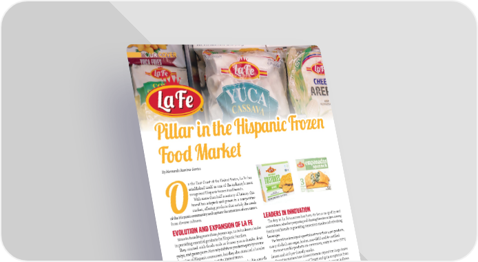 OUR COVER PPiillllaar r iin n tthhe e HHiissppaanniic c FFrroozzeenn FFoooodd MMaarkrkeett By Hernando Ramírez-Santos n the East Coast of the United States, La Fe has established itself as one of the industry's most recognized Hispanic frozen food brands. With more than half a century of history, this brand has adapted and grown in a competitive Omarket, o昀昀ering products that satisfy the needs of the Hispanic community and capture the attention of consumers from diverse cultures. LEADERS IN INNOVATION EVOLUTION AND EXPANSION OF LA FE 吀栀e key to La Fe's success has been its focus on quality and Since its founding more than 56 years ago, La Fe has been a leader convenience, whether preparing and sharing favorite recipes among in providing essential products for Hispanic families. family and friends or providing convenient snacks and refreshing 吀栀ey started with foods such as frozen yucca chunks, fruit beverages. pulps, and guava paste. Not only did these products quickly become 吀栀e brand has developed a portfolio of more than 1,400 products, favorites of Hispanic consumers, but they also attracted a broader many of which are vegan, kosher, non-GMO and A+ certi昀椀ed. audience on the East Coast of the United States. Its most notable products are convenient, ready-to-serve (RTS) However, La Fe has faced several challenges in this growth frozen and air fryer-friendly snacks. process, especially in a changing and evolving post-COVID-19 吀栀ese innovations have allowed them to expand into large chains marketplace. such as Walmart, Kroger, and Target and gain acceptance from One of the biggest challenges has been maintaining control of the second-generation Hispanic consumers and a mainstream audience. supply chain, a昀昀ected by global events. However, with suppliers in La Fe's frozen food portfolio represents 65% of its business, with regions such as Central and South America, Asia, and Europe, La Fe more than 500 products that include frozen yucca, exotic fruit pulps, has managed to stabilize costs and maintain its growth. sweet plantains, tostones, and a line of empanadas. Today, La Fe directly serves more than 吀栀ese foods are imported mainly from Latin America and the 12 states on the East Coast and indirectly Caribbean. 吀栀ey also import banana leaves from 吀栀ailand, one of reaches places like Illinois, Texas, and the best-selling products along the East Coast due to its freshness California, establishing itself as the 昀椀rst and high quality. However, they also have local products from the choice for quality products for Hispanic United States, such as frozen vegetables. consumers of all generations. CONSUMER FAVORITES 吀栀e acceptance of La Fe's frozen foods on the East Coast has been remarkable. According to a study conducted by WATT in early 2024, La Fe is in the top 3 for Anglo-Hispanic brand recognition and is the preferred frozen product portfolio for second-generation Hispanic and mainstream consumers between the ages of 20 and 45. 2626 JJUULLYY//AAUUGGUUSST 2T 200224 4 AABBAASSTOTO..CCOOMM