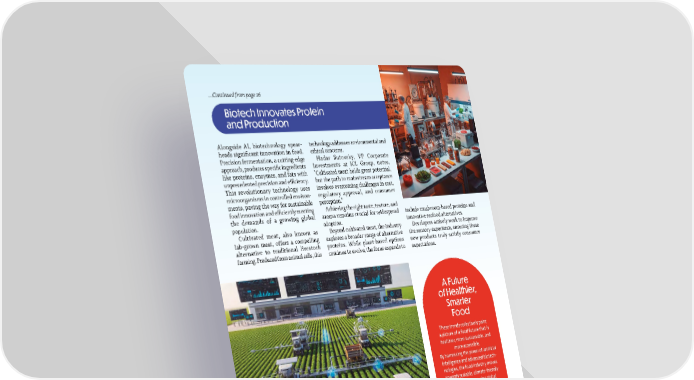 28 JULY / AUGUST 2025 ABASTO.COM Alongside AI, biotechnology spear- heads significant innovation in food. Precision fermentation, a cutting-edge approach, produces specific ingredients like proteins, enzymes, and fats with unprecedented precision and efficiency. This revolutionary technology uses microorganisms in controlled environ- ments, paving the way for sustainable food innovation and efficiently meeting the demands of a growing global population. Cultivated meat, also known as lab-grown meat, offers a compelling alternative to traditional livestock farming. Produced from animal cells, this technology addresses environmental and ethical concerns. Hadar Sutovsky, VP Corporate Investments at ICL Group, notes, "Cultivated meat holds great potential, but the path to mainstream acceptance involves overcoming challenges in cost, regulatory approval, and consumer perception." Achieving the right taste, texture, and aroma remains crucial for widespread adoption. Beyond cultivated meat, the industry explores a broader range of alternative proteins. While plant-based options continue to evolve, the focus expands to Biotech Innovates Protein and Production include mushroom-based proteins and innovative seafood alternatives. Developers actively work to improve the sensory experience, ensuring these new products truly satisfy consumer expectations. The drive for sustainability underpins many of these technological advance- ments. Carbon utilization, for example, explores innovative methods to convert carbon dioxide into valuable food ingre- dients. Similarly, regenerative agriculture, which restores soil health and enhances ecosystem resilience, moves from niche interest to a mainstream strategy within the food system. Controlled Environment Agriculture (CEA), including hydroponics and aero- ponics, optimizes growing conditions for higher yields with significantly less water. This facilitates the expansion of urban and vertical farming, which reduces "food miles" and enhances local food security. Furthermore, the industry increa- singly demands sustainable packaging solutions to combat plastic waste, while upcycled ingredients play a larger role in reducing overall food waste. The integration of blockchain tech- nology also boosts transparency and traceability throughout the supply chain. This real-time tracking helps combat food fraud and builds greater trust between producers and consumers. A Future of Healthier, Smarter Food These trends collectively paint a picture of a food future that is healthier, more sustainable, and more accessible. By harnessing the power of artificial intelligence and advanced biotech- nologies, the food industry moves towards scalable, climate-friendly solutions for a growing global population. This innovative trajectory promises not only to revolutionize how we produce and consume food but also to address some of humanity's most pressing challenges. Sustainable Practices Gain Momentum …Continued from page 26
