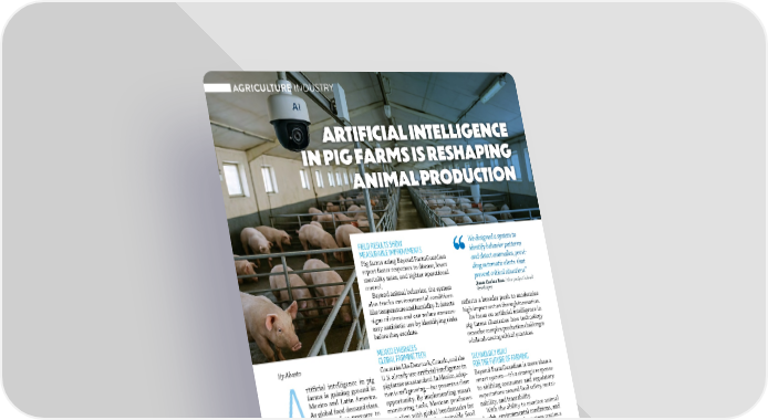 92 JULY / AUGUST 2025 ABASTO.COM By Abasto A rtificial intelligence in pig farms is gaining ground in Mexico and Latin America. As global food demand rises, producers face pressure to boost efficiency without compromising animal welfare or resource management. Tools like Beyond FarmGuardian offer a concrete response. Developed by Beyond Technology, this solution monitors pigs’ health and behavior in real time using AI-powered cameras and algorithms. REAL-TIME DATA ENABLES SMARTER DECISIONS Manual observation once dominated pig farming. Today, sensors and AI came- ras automate surveillance and deliver real-time data to decision-makers on the ground. Jorge Mandujano, founder of Beyond Technology, noted that Beyond FarmGuardian provides actionable, systematic insights. “This technology helps staff respond quickly and make better-informed decisions,” he said. ARTIFICIAL INTELLIGENCE IN PIG FARMS IS RESHAPING ANIMAL PRODUCTION FIELD RESULTS SHOW MEASURABLE IMPROVEMENTS Pig farms using Beyond FarmGuardian report faster responses to disease, lower mortality rates, and tighter operational control. Beyond animal behavior, the system also tracks environmental conditions like temperature and humidity. It detects signs of stress and can reduce unneces- sary antibiotic use by identifying risks before they escalate. MEXICO EMBRACES GLOBAL FARMING TECH Countries like Denmark, Canada, and the U.S. already use artificial intelligence in pig farms as a standard. In Mexico, adop- tion is still growing—but presents a clear opportunity. By implementing smart monitoring tools, Mexican producers can align with global benchmarks for animal welfare and sustainable food production. BEYOND TECHNOLOGY LEADS AI INNOVATION IN AGRICULTURE Based in Mexico with 12 regional offices worldwide, Beyond Technology brings over 30 years of experience in digital transformation. Its work in agriculture reflects a broader push to modernize high-impact sectors through innovation. Its focus on artificial intelligence in pig farms illustrates how technology can solve complex production challenges while advancing ethical practices. TECHNOLOGY BUILT FOR THE FUTURE OF FARMING Beyond FarmGuardian is more than a smart system—it’s a strategic response to shifting consumer and regulatory expectations around food safety, sustai- nability, and traceability. With the ability to monitor animal health, environmental conditions, and behavioral trends, the system creates a new standard for efficient, responsible pig farming. Artificial intelligence in pig farms doesn’t just improve daily operations—it charts a future for agriculture rooted in data, precision, and animal care. A BOOMING GLOBAL AI AGRICULTURE MARKET According to IMARC Group, the global market for AI in agriculture reached $1.8 billion in 2023. It’s expected to exceed $10.1 billion by 2032, with an annual growth rate of 20.51%. Growth is fueled by rising agricultural demand, expanded rural digital infrastructure, and broader integration of smart technologies in food production. We designed a system to identify behavior patterns and detect anomalies, provi- ding automatic alerts that prevent critical situations” Juan Carlos Rea / the project’s lead developer AGRICULTURE INDUSTRY