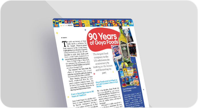 14 • March | April 2026 • abasto.com 90 Years of Goya Foods BY ABASTO T he 90th anniversary of Goya Foods marks a milestone for the largest Hispanic-owned food company in the United States, highlighting nine decades of growth, entrepreneurship, and cultural roots. Founded in 1936, Goya Foods grew from a small family business to an iconic brand with a global presence. Since its beginnings in New York, the company has maintained a clear mission: to feed families and preser- ve culture through food. The company was born from the efforts of immigrants who arrived with few resources and built a lasting business with discipline and faith. Peter Unanue, executive at Goya Foods, emphasized that the com- pany’s purpose remains intact. For 90 years, Goya Foods has welcomed newcomers as families always do: by sharing food that evokes home. From a Small Business to 90 Years of Tradition Goya Foods began in a modest store- front in Lower Manhattan, founded by Spanish immigrants serving a growing Latino community. At that time, finding authentic ingredients was difficult for many families. As demand grew, the company gra- dually expanded its distribution. It then invested in manufacturing and logistics, which fueled its sustained expansion. • The company operates 25 manufac- turing, packaging, and distribution plants worldwide. • Its portfolio exceeds 2,500 pro- ducts. • Its workforce exceeds 4,000 emplo- yees. This growth was the result of a disciplined strategy focused on in- frastructure and efficiency, before globalization dominated the food industry. The largest food company in the US celebrates its anniversary by looking to the future and honoring its past Goya Foods and its Influence on Latin Cuisine in the United States For nine decades, Goya Foods has been a benchmark for Latin cuisine in the United States. The brand intro- duced millions of consumers to es- sential products such as beans, rice, olive oil, adobo, sazón, and tropical beverages. Although it initially catered main- ly to Hispanic consumers, the com- pany gradually entered mass retail channels. Today, its products can be found in the country’s major super- market chains. Goya Foods is a symbol of flavor, quality, and authenticity for consu- mers of diverse backgrounds. Innovation with Respect for Tradition Goya Foods’ longevity is based on a balance between heritage and inno- vation. The company adapted its por- tfolio to modern lifestyles without sacrificing traditional flavors. Faced with a more competitive mar- ket, Goya prioritizes consistency and efficiency. That vision explains its strength as it enters its tenth decade. Commitment to the Community Community impact is part of Goya’s DNA. Through the Goya Gives initiative, the company supports anti-hunger pro- grams, natural disaster relief, educational scholarships, and community partnerships. These actions focus especia- lly on immigrants and working families. According to the com- pany, giving back to the com- munity is a responsibility linked to its origins. To celebrate its 90th anni- versary, Goya Foods will hold nationwide events throughout the year. Activities will include cultural partnerships, social media campaigns, contests, special products, and expanded community programs. In addition, the company will highlight iconic products and new offerings aligned with its legacy. • IN THE NEWS