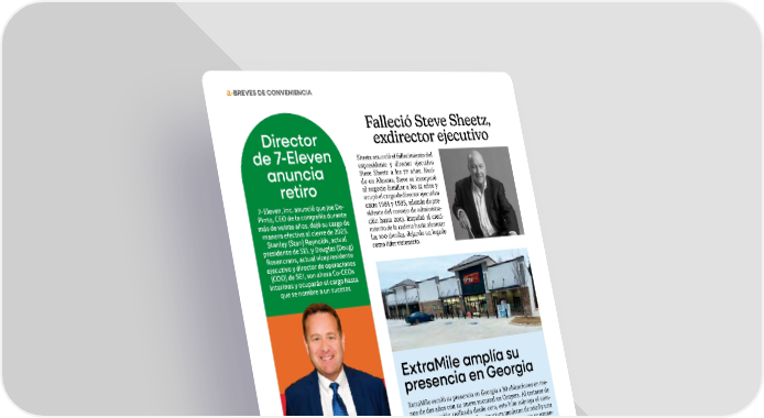 18 • Marzo | Abril 2026 • abasto.com • BREVES DE CONVENIENCIA Director de 7-Eleven anuncia retiro 7-Eleven, Inc. anunció que Joe De- Pinto, CEO de la compañía durante más de veinte años, dejó su cargo de manera efectiva al cierre de 2025. Stanley (Stan) Reynolds, actual presidente de SEI, y Douglas (Doug) Rosencrans, actual vicepresidente ejecutivo y director de operaciones (COO) de SEI, son ahora Co-CEOs interinos y ocuparán el cargo hasta que se nombre a un sucesor. Yesway contrata a Hampton como director de Tecnología Yesway anunció la incorporación de Ro- bert Hampton a la empresa como director de Tecnología (CTO). Bajo las órdenes di- rectas del presidente del Consejo y director ejecutivo, Hampton liderará la estrategia de tecnología de la información de Yesway y supervisará todos los aspectos de tecno- logía empresarial, transformación digital, ciberseguridad e innovación. Falleció Steve Sheetz, exdirector ejecutivo ExtraMile amplía su presencia en Georgia ExtraMile escaló su presencia en Georgia a 30 ubicaciones en me- nos de dos años con su nueva sucursal en Conyers. Al tratarse de una construcción realizada desde cero, este hito subraya el com- promiso de la marca con la infraestructura moderna de retail y una rápida penetración de mercado, marcando el ritmo para su expan- sión estratégica B2B en 2026. Sheetz anunció el fallecimiento del expresidente y director ejecutivo Steve Sheetz a los 77 años. Naci- do en Altoona, Steve se incorporó al negocio familiar a los 12 años y ocupó el cargo de director ejecutivo entre 1984 y 1995, además de pre- sidente del consejo de administra- ción hasta 2013. Impulsó el creci- miento de la cadena hasta alcanzar las 100 tiendas, dejando un legado como líder visionario.