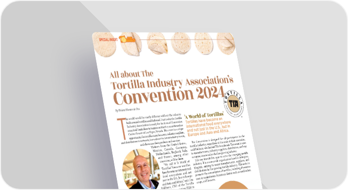special insert All about The Tortilla Industry Association’s Convention 2024 By Violeta Montes de Oca he world would be vastly di昀昀erent without the industry built around tortillas and 昀氀atbread. 吀栀at is why the Tortilla 'A World of Tortillas' Industry Association is ready for its Annual Convention Tortillas have become an 2024 And Trade Show to happen on May 8-9-10 at Horseshoe international food everywhere Casino Resort of Las Vegas, Nevada. 吀栀is event is a unique and not just in the U.S., but in Topportunity for tortilla manufacturers, industry suppliers, and distributors to network, learn about the latest industry trends, Europe and Asia and Africa. and showcase their products and services. Visitors from the United States, 吀栀e Convention is designed for all participants in the Mexico, Canada, Germany, tortilla industry, regardless of the scale of their operation, Netherlands, England, Italy, said Kabbani, who has led TIA for a decade. 吀栀is event is open and France, among other to manufacturers, industry suppliers, distributors, and any countries, will be there. company interested in the fast-growing industry. “We call it ‘A World of TIA was founded in 1990 to serve the emerging tortilla Tortillas’ because tortillas industry. It is a non-pro昀椀t organization based in Arlington, have become an international Virginia, aiming to assist manufacturers, suppliers, and food everywhere and not distributors in the growing tortilla industry. TIA seeks to just in the U.S., but in Europe promote the consumption of tortillas, including alternative and Asia and Africa,” said Jim uses in mainstream American dishes such as sandwiches, Kabbani, CEO of the Tortilla soups, and desserts. Industry Association (TIA) to JIM KABBANI Abasto during an interview. DIRECTOR GENERAL DE LA TORTILLA e INDUSTRY ASSOCIATION (TIA) ortillas ar T y da o t ar l popu e mor l .S. than al in the U s, ¿Who is Going? thnic bread ther e o s, l ge a b as h 70 exhibiting suc , and ish mu昀케ns Engl pita bread. D CHEMISTRY companies CE: FOO SOUR 550 attendees 18 different countries 44 MMAAYY//JJUUNNE 20E 20224 - 4 - AABABASSTTOO..CCOMOM