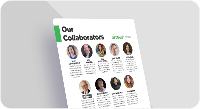 Our TM BUENOS CONSEJOS. Collaborators BUENOS NEGOCIOS. MARY RON ANA JULIO IBÁÑEZ PAOLA OCHOA COPPOLA HESLEP MARGULIS MARÍA TRIANA Retail Executive, Director of Operations Creative Director of Director of RAM Psychologist & International. CEO at Agtools. She has Ten Acre Marketing. Communications, Business Consultant. of Aurora Grocery a Master's degree in Former vice presi- LLC. He is a journa- She is Marketing Group and President Clinical Nutrition and dent of marketing for list specializing in Director of AnaBella of the Hispanic more than 10 years United Fresh Produce the food industry. Dried Food. Retail Chamber of of experience in the Association. Commerce. supply chain. JAIME ENRIQUE RICARDO GAITÁN “RICK” PARRA Branding specialist. RAMON PORTILLA NISSA PIERSON Executive Director of Master in Marketing Founder HumanX Renowned herb expert, multicultural consul- Management, Insights. Visionary cooking teacher and ting for Cross Cultural Universidad San Plablo. leader in customer recipe creator. Nissa Conexion with over Author of the book: "101 insights. Passionate writes about fresh 30 years in the CPG useful branding tips". about CX. Innovator herbs on her blog sector. in Insights technology MyHerbal-Roots.com. ABASTO MEDIA IS ACCREDITED / ACTIVELY INVOLVED Gerente General / VIOLETA MONTES DE OCA Mercadotecnia Multicultural WITH THE FOLLOWING ASSOCIATIONS: General Manager [email protected] • /Multicultural Marketing GUSTAVO CALABRO 336.724.9718 x.203 ANITA GRACE, MBA [email protected] • Cuentas Nacionales / [email protected] • 336.724.9718 x.204 National Accounts 763.792.3538 ELIANA LANKERD Director Creativo / Creative [email protected] • Administración & Eventos / Director 336.724.9718 x.202 Administration & Events JENNIFER PANTOJA-PAREDES Ventas México-Latam / FERNANDA PIÑEROS WALKER [email protected] • Sales Representative LATAM fernanda.pineros@abasto. 336.724.9718 x.201 MARCELA CHAVES com • 336.724.9718 x.213 [email protected] • Coordinador Editorial / 336.724.9718 x.206 PPubublliicciiddaadd / / A Addvvererttiissiinngg Editorial Coordinator NILDA MARÍN adadveverrttiissiinngg@@aabbaassttoo..ccoomm HERNANDO [email protected] • 33336.6.44886.6.22442244 Abasto es una revista bimestral de circulación nacional publicada By Hispanic RAMÍREZ-SANTOS 336.968.1276 Marketing Consultants, Inc. P.O. Box 20577 Winston-Salem, NC 27101. Todos los derechos reservados. Prohibida la reproducción parcial o total de su [email protected] JUAN PABLO MADERO Suscripciones / Suscriptions contenido sin previa autorización del Editor. Abasto investiga la seriedad de sus anunciantes, pero no se hace responsable del contenido de las ofertas. Las • 336.724.9718 x.205 [email protected] • [email protected] opiniones expresadas By los autores y contribuyentes que colaboran en esta revista no son necesariamente compartidas By los editores o representantes 52.1.333.167. 8502 de HMC (Hispanic Marketing Consultants) Abasto Media. 88 MMAAYY//JJUUNNE 2E 200224 4 AABBAASSTOTO..CCOOMM
