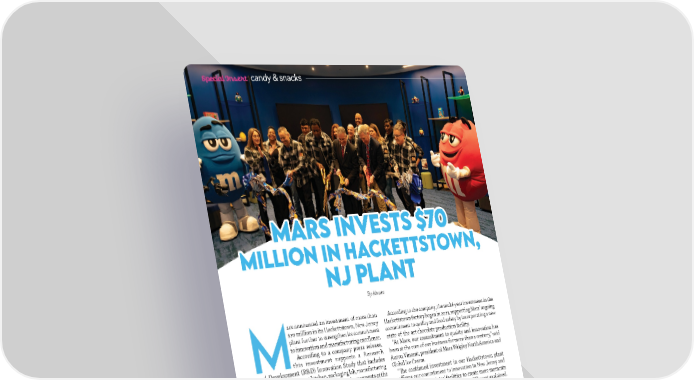 Special Ins攀爀t candy & snacks MaMarrss I Innveveststss $7 $700 MMiillillioonn i inn H Haackckeettttssttoowwnn,, nnJ PlJ Plaantnt By Abasto ars announced an investment of more than According to the company, the multi-year investment in the $70 million in its Hackettstown, New Jersey Hackettstown factory began in 2023, supporting Mars' ongoing plant further to strengthen its commitment commitment to quality and food safety by incorporating a new to innovation and manufacturing excellence. state-of-the-art chocolate production facility. According to a company press release, "At Mars, our commitment to quality and innovation has M this investment supports a Research been at the core of our business for more than a century," said and Development (R&D) Innovation Study that includes Anton Vincent, president of Mars Wrigley North America and implementing a new test kitchen, packaging lab, manufacturing Global Ice Cream. e昀케ciency improvements, and food safety advancements at the "吀栀e continued investment in our Hackettstown plant Hackettstown plant. rea昀케rms our commitment to innovation in New Jersey and 吀栀e R&D Innovation Studio in Hackettstown, which belongs enhancing our associates' facilities to create more moments to Mars, is adapting to changing consumer preferences to of everyday happiness for our consumers," Vincent explained. accelerate innovation and product development. 吀栀e opening of the New Jersey Innovation Studio follows the recent opening of Mars Snacking's $42 million Research A SPACE FOR INNOVATION and Development Center in Chicago. 吀栀is innovation center will support the production of Mars Wrigley's iconic U.S.-made products, such as M&M'S®, SNICKERS®, TWIX®, MILKY WAY®, SKITTLES®, , y w Jerse STARBURST®, EXTRA®, and ALTOIDS®, as well as the ory in Ne Mars has a long hist company's future product innovations. ark more w ing opened its doors in Ne v 吀栀e upgraded packaging lab will facilitate the development ha ears ago and been part of the and testing of sustainable packaging materials, in line with than 80 y Mars' commitment to a circular economy where packaging 58. 9 1 e c n i s ty i n mmu o c n w o t s tt e k c Ha materials are recycled, reused, or composted instead of becoming waste. 吀栀is approach rea昀케rms Mars' commitment to sustainability and environmental responsibility throughout its manufacturing process. 88 MMAAYYOO//JJUUNNIIO 20O 20224 - 4 - AABABASSTTOO..CCOMOM