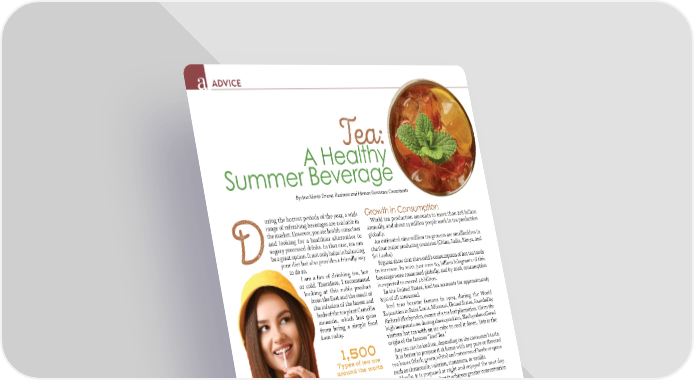 ADVICE Tea: A Healthy Summer Beverage By Ana María Triana, Business and Human Resources Consultants uring the hottest periods of the year, a wide Growth in Consumption range of refreshing beverages are available in World tea production amounts to more than $18 billion the market. However, you are health-conscious annually, and about 13 million people work in tea production and looking for a healthier alternative to globally. sugary processed drinks. In that case, tea can An estimated nine million tea growers are smallholders in Dbe a great option. It not only helps in balancing the four major producing countries (China, India, Kenya, and your diet but also provides a friendly way Sri Lanka). to do so. Figures show that the world’s consumption of hot tea tends I am a fan of drinking tea, hot to increase. In 2022, just over 6.5 billion kilograms of this or cold. 吀栀erefore, I recommend beverage were consumed globally, and by 2028, consumption looking at this noble product is expected to exceed 7.6 billion. from the East and the result of In the United States, iced tea accounts for approximately the infusion of the leaves and 85% of all consumed. buds of the tea plant Camellia Iced teas became famous in 1904, during the World sinensis, which has gone Exposition in Saint Louis, Missouri, United States, founded by from being a simple food Richard Blechynden, owner of a tea leaf plantation. Given the item today. high temperatures during the exposition, Blechynden o昀昀ered visitors hot tea with an ice cube to cool it down. 吀栀is is the 1,500 origin of the famous “Iced Tea.” Any tea can be iced tea, depending on the consumer’s taste. Types of tea are It is better to prepare it at home with any pure or 昀氀avored around the world tea leaves (black, green, white) and mixtures of herbs or spices such as chamomile, valerian, cinnamon, or vanilla. After water, tea Ideally, it is prepared at night and enjoyed the next day. is the second 吀栀is method is longer, but it achieves greater concentration most consumed and 昀氀avor. beverage. It is Benefits traditional to Besides being a refreshing drink, iced tea helps keep the drink tea as body hydrated, improves the immune system due to its a hot or cold Vitamin C content, detoxifies, purifies, and improves beverage, the antioxidant levels, preventing aging. Due to its low caffeine latter being content, it is ideal for children, pregnant women, or being a refreshing consumed at night. and fun way With certainty, the growing wave of sustaining a healthy life to hydrate on and diet will be the pulse that marks that this market days when high continues to gain strength as a substitute for carbonated temperatures beverages because, despite its age, it is still considered a can cause us to lose sophisticated and quality product, that will surely continue to electrolytes. stand out for a great consumption trend in the coming years. In addition, tea keeps us in shape. 6688 MMAAYY//JJUUNNE 2E 200224 4 AABBAASSTOTO..CCOOMM