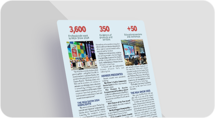 + 3,600 350 50 Professionals went Exhibitors of Educational sessions to NGA Show 2024 products and and workshops services Network star whose positive energy, love of food, and experiences pushing outside of her comfort zone delivered an enthu- siastic kicko昀昀 to the show. Multiple networking events, including the opening reception, the Best Bagger Championship sponsored by PepsiCo, and the closing celebration at Brooklyn Bowl, which features a Women Grocers of America cocktail hour. Co-located with the Independent “吀栀e NGA Show is truly the place where Grocers Alliance Rally and and valuable products displayed on grocers gather – and gather they did, in Indoor Ag-Con. the expo floor. This year’s winners record numbers,” said Jamie Reesby, vice included Amodex in the Center Store president for generation and grocery at AWARDS PRESENTED category; Soulful Bee for Fresh Health Clarion Events. “Working closely with Several awards were presented, and Wellness/Pharmacy; Retail Data NGA and its members, we continue to including: Systems for Operational Services; Digi enhance our o昀昀erings, from education 吀栀e Peter J. Larkin Community America Inc. for Sustainability in Store to networking, to help grocers navigate Service Award a RoNetco Supermarkets Design; and Shopic for Technology. today’s competitive environment. Initial de Nueva Jersey. 吀栀e Student Case Study Competition responses have been glowing and we The Thomas K. Zaucha was won by the team from Cornell look forward to continuing to meet and Entrepreneurial Excellence Award University. exceed those expectations.” a la Excelencia Empresarial a Kim Eskew, presidente y director general de la cadena THE NGA SHOW 2025 THE NGA SHOW 2024 de supermercados Harps Food Stores de Next year, the NGA Show will take HIGHLIGHTS Arkansas. place Feb. 23-25, 2025, at the Caesars 吀栀e return of the popular Technology WGA Woman of the Year Award Forum Convention Center in Las Vegas. Summit and Financial Symposium on a Marcy Nathan, directora creativa de “It will be one more year here in this Sunday, plus a “Snack and See” session Rouses Markets. facility. 吀栀e good news is that next year, honoring the recipients of NGA’s 吀栀e Best Bagger Championship se many of our rooms that you saw many Creative Choice Awards for excellence in lo ganó Madison Ireland, de Harmons of the education rooms were so popular marketing and merchandising, featuring Neighborhood Grocer, de Utah. that we had people stand up by the walls. celebrity chef Curtis Aikens as emcee. NGA’s Creative Choice Awards: Next year, we’re going to turn some A sold-out expo hall featuring more Winners by popular online vote of those workshops into even larger than 350 exhibitors and sponsors, of the Outstanding Marketer and sessions so that more people will be more where retailers and wholesalers disco- Merchandiser awards were Michigan- comfortable and can attend”, said Greg vered products and services covering based SpartanNash and Hired Man’s Ferrara to Abasto during an interview the entire spectrum from store design Grocery and Grill in Conway Springs, on the last day of the 2024 NGA Show. to innovative food products and thought Kan., respectively. A complete list of “We want to continue to grow that, and leadership theater sessions with expan- winners can be found here. our goal is to grow this show so that ded educational opportunities beyond Students from the Food Industry the entire grocery industry is able to the main stage and breakouts. University Coalition presented the come together to 昀椀nd new products to The opening keynote address was Student Standout Awards, honoring make new connections to learn great presented by celebrity chef Carla Hall, a their choices for the most interesting education, and to take all that back to dynamic entrepreneur, author, and Food the companies to be able to grow.” +100 #42 23-25 Experts at sessions Edition of the trade Of February will be and workshops show produced by the NGA Show the National Grocers 2025 Association and Clarion Events AABBAASSTTO O..CCOOMM MMAAYY//JJ UUNNEE0 0 2 2 2244 4455