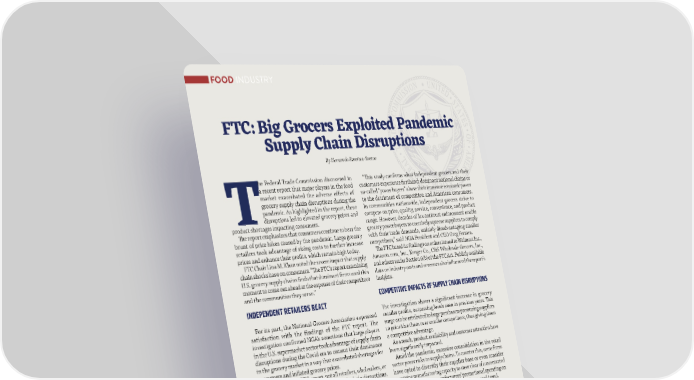 FOOD INDUSTRY FTC: Big Grocers Exploited Pandemic Supply Chain Disruptions By Hernando Ramírez-Santos he Federal Trade Commission discovered in “吀栀is study con昀椀rms what independent grocers and their a recent report that major players in the food customers experience 昀椀rsthand: dominant national chains or market exacerbated the adverse effects of so-called “power buyers” abuse their immense economic power grocery supply chain disruptions during the to the detriment of competition and American consumers. pandemic. As highlighted in the report, these In communities nationwide, independent grocers strive to Tdisruptions led to elevated grocery prices and compete on price, quality, service, convenience, and product product shortages impacting consumers. range. However, decades of lax antitrust enforcement enable 吀栀e report emphasizes that consumers continue to bear the grocery power buyers to coercively squeeze suppliers to comply brunt of price hikes caused by the pandemic. Large grocery with their trade demands, unfairly disadvantaging smaller retailers took advantage of rising costs to further increase competitors,” said NGA President and CEO Greg Ferrara. prices and enhance their pro昀椀ts, which remain high today. 吀栀e FTC based its 昀椀ndings on orders issued to Walmart Inc., FTC Chair Lina M. Khan noted the severe impact that supply Amazon.com, Inc., Kroger Co., C&S Wholesale Grocers, Inc., chain shocks have on consumers. “吀栀e FTC’s report examining and others under Section 6(b) of the FTC Act. Publicly available U.S. grocery supply chains 昀椀nds that dominant 昀椀rms used this data on industry costs and revenues also in昀氀uenced the report’s moment to come out ahead at the expense of their competitors insights. and the communities they serve.” COMPETITIVE IMPACTS OF SUPPLY CHAIN DISRUPTIONS INDEPENDENT RETAILERS REACT 吀栀e investigation shows a signi昀椀cant increase in grocery For its part, the National Grocers Association expressed retailer pro昀椀ts, surpassing levels seen in previous years. 吀栀is satisfaction with the findings of the FTC report. The surge can be attributed to large purchasers pressuring suppliers investigation con昀椀rmed NGA’s assertions that large players to prioritize them over smaller competitors, thus giving them in the U.S. supermarket sector took advantage of supply chain a competitive advantage. disruptions during the Covid era to cement their dominance As a result, product availability and customer attraction have in the grocery market in a way that exacerbated shortages for been signi昀椀cantly impacted. consumers and in昀氀ated grocery prices. Amid the pandemic, excessive consolidation in the retail According to the FTC report, not all retailers, wholesalers, or sector poses risks to supply chains. To counter this, some 昀椀rms producers were impacted equally by supply chain disruptions. have opted to diversify their supplier base or even consider Smaller grocery retailers faced more challenges with product acquiring manufacturing capacity to steer clear of concentrated availability than larger 昀椀rms during supply chain disruptions. markets. Moreover, manufacturers’ promotional spending on Some larger 昀椀rms managed to safeguard their product supplies scarce items has observed a noticeable downward trend. more e昀昀ectively, creating an uneven playing 昀椀eld in the market. In response to the pandemic, some larger firms have considered acquiring manufacturing suppliers, potentially increasing supply chain concentration. 吀栀e report highlights how bottlenecks in supply chains can lead to signi昀椀cant shocks, favoring major 昀椀rms. 5656 MMAAYY//JJUUNNE 2E 200224 4 AABBAASSTOTO..CCOOMM