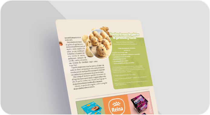 TT rroo cicittoo s ds d e me m asasa da d e ge g aallll que puede preparar en un dd eettasas e ge g aarr bb santiamén. aann zz oo s y ns y n uecesueces Estos trocitos de masa Receta cortesía de Dawn Jackson Blatner , de galleta de garbanzos y RD N, en nombr e de la American P ecan Pr nueces son perfectos para un omotion Boar d. snack y están repletos de sabor, ya que sustituyen Tiempo de preparación: 10 minutos Rac iones: 2 la harina y el azúcar por 4 una mezcla de nueces, • 1 taza de trozos de nuez cruda • 1 lata (15 onzas garbanzos, extracto de ) de garbanzos, enjuagados y escurridos vainilla, canela y sal marina, • 1 cucharada de extracto de vainilla con trocitos de chocolate negro como • 1/2 cucharadita de canela toque 昀椀nal. • 1/2 cucharadita de sal marina O puede simplemente mezclar nueces calientes con • 1/2 taza de pepitas de chocolate amargo aceite de oliva y sal marina en esta receta de nueces 1. En una batidora o procesador de aliment os, mez cle los tro z tostadas para un snack para llevar que puede prepararse de nueces, los garbanz os os, el extract marina de 3 a 5 m o de vainilla, la canela y la sal con antelación sin preocuparse de que se estropeen. inut os, raspando los lados de v obt ez en cuando, hasta ener una mez cla sua v Otra ventaja de las nueces: pueden conservarse en e y cremosa. el frigorí昀椀co hasta nueve meses o congelarse hasta dos 2. Inc o r po r e l a s pep i t a s de c hoc o l a t e am ar go años, lo que les con昀椀ere una vida útil más larga que la . 3. Forme 2 de muchos productos favoritos de la despensa. 4 bolas de masa de galleta. Coma tal cual; no es necesario h o r ne a r Además, se pueden descongelar y volver a congelar . sin que pierdan sabor ni textura. Nota: Guarde el resto en un recipiente hermético en el refrigerador cinco d c ías o ongél el o hasta t r es mes es. AABABASSTTOO..CCOMOM MMAAYYOO//JJUNUNIIOO 2 2002244 1515