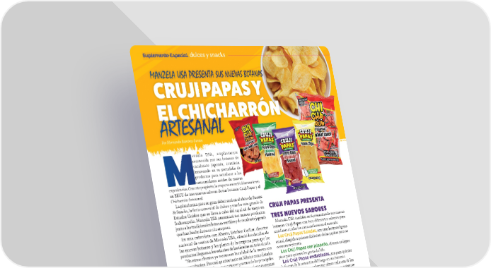 Suplemento Especial dulces y snacks MANZELA USA PRESENTA SUS NUEVAS BOTANAS CRUJI PAPAS Y EL CHICHARRÓN ARTESANAL Por Hernando Ramírez-Santos anzela USA, ampliamente reconocida por sus botanas de cacahuate japonés, continúa innovando en su portafolio de productos para satisfacer a los Mconsumidores ávidos de nuevas experiencias. Con este propósito, la empresa anunció el lanzamiento en EEUU de tres nuevos sabores de sus botanas Cruji Papas y el Chicharrón Artesanal. La plataforma para su gran debut será en el show de Sweets & Snacks, la feria comercial de dulces y snacks más grande de Estados Unidos que se lleva a cabo del 14 al 16 de mayo en CRUJI PAPAS PRESENTA Indianapolis. Manzela USA presentará sus nuevos productos junto a las tradicionales botanas surtidas y de cacahuate japonés TRES NUEVOS SABORES que han hecho famosa a la empresa. Manzela USA también está presentando sus nuevas En una entrevista con Abasto, Esteban Cuéllar, director botanas Cruji Papas con tres diferentes sabores para nacional de ventas de Manzela USA, ofreció los detalles de satisfacer a todos los consumidores en el mercado. las nuevas botanas y los planes de la empresa para que los Las Cruji Papas Saladas, son unas botanas ligeras productos lleguen a los estantes de las tiendas en todo el país. en sal, dirigida a quienes disfrutan de las papitas pero no “Nuestros clientes ya reconocen la calidad de la marca con consumen picante. sus cacahuates. Por casi 40 años tanto en México como Estados Las Cruji Papas con jalapeño, ofrecen un ligero Unidos los consumidores nos conocen y somos de las principales picor para quienes les gusta el chile. marcas en lo que es el cacahuate japonés y eso mismo queremos Las Cruji Papas endiabladas, son para quienes hacer ahora con estos nuevos productos”, dijo Cuéllar. disfrutan de la sensación del fuego en sus botanas. Sumado al delicioso sabor que ofrece cada una de las EL CHICHARRÓN ARTESANAL variedades de Cruji Papas, su calidad asegura que siempre Esta es una botana reconocida y muy apetecida entre los estarán crujientes, haciendo honor a su nombre. consumidores del centro y sur de México donde hace un buen Manzela USA comenzó la distribución de las Cruji Papas tiempo que se vende en las tiendas. Precisamente por su gran y el Chicharrón Artesanal en los supermercados y tiendas demanda, Manzela USA decidió iniciar su comercialización en de conveniencia para que los clientes se familiaricen con Estados Unidos para que los consumidores en este país puedan las nuevas botanas. disfrutar de esta singular botana. “Estaremos realizando muchos El Chicharrón Artesanal de Manzela USA, aunque luce y demos porque sabe como si fuera de cerdo, es elaborado con harina. Además, la gente tiene se prepara, como su nombre lo indica, de manera que probar artesanal. el producto, “En el mercado de Estados Unidos, conocerlo, para yo no he visto un chicharrón como que entienda qué este por su proceso de elaboración, nos diferencia de desde el corte de la pasta, su cocción, las demás marcas”, todo 100 por ciento artesanal. concluyó Cuéllar. Cuando el cliente lo empiece a probar, podrá distinguir esa diferencia”, destacó Cuéllar. 22 MMAAYYOO//JJUUNNIIO 20O 20224 - 4 - AABABASSTTOO..CCOMOM