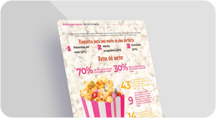 Suplemento Especial dulces y snacks El Popcorn Board publicó algunos datos interesantes sobre el consumo de palomitas. Según una encuesta realizada por OnePoll a solicitud del Popcorn Board en enero de 2021 a 2,000 estadounidenses, así comen este snack: Requisitos para una noche de cine perfecta 1 Palomitas de 2Manta 3Chocolate maíz (51%) acogedora (46%) (37%) Datos del sector de las palomitas se de las palomitas se 70%consume en casa 30% consumen fuera de casa cconontteneneedordoreess de de ppaalloommitaitass,, ta tammaaññoo ccuuaarrttoo de de g gaalónlón,, 4343 ccoonnssuummee u unnaa p peerrssoonnaa al al añañoo.. son los principales estados productores de palomitas: Illinois, Indiana, Iowa, Kansas, 99 Kentucky, Michigan, Missouri, Nebraska y Ohio. milmil mill milloonneess d dee cconontteneneedordoreess de de 1414 ppaalomlomiittaass de de d diichchoo ttaammaañoño s see co connssuumemenn a all aaññoo en en E Essttadoadoss U Unniidodoss,, ccoon bn baasse ee en ln laas vs veennttaass ddee 20 201166--20202020.. son los tipos principales de maíz: dulce, Dent, 44 Flint y palomitas. 2424 MMAAYYOO//JJUUNNIIO 20O 20224 - 4 - AABABASSTTOO..CCOMOM
