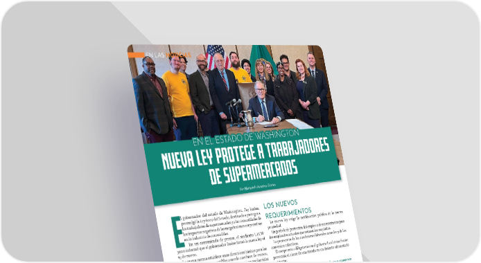 EN LAS NOTICIAS ONON TT NNGG HIHI SS AA DODO DE DE W W AA TT SS LL E E NN E E EE es r ado aj ab e a tr oteg a ley pr ev u N s cado permer u de s ez-Santos ernando Ramír or H P l gobernador del estado de Washington, Jay Inslee, LOS NUEVOS promulgó la Ley 6007 del Senado, destinada a proteger a los trabajadores de supermercados y a las comunidades de REQUERIMIENTOS los impactos negativos de las megafusiones corporativas La nueva ley exige la notificación pública de la nueva en la industria de comestibles. propiedad. EEn un comunicado de prensa, el sindicato UFCW Un periodo de protección del empleo o de recontratación para 3000 informó que el gobernador Inslee 昀椀rmó la nueva ley el los empleados actuales que reúnan los requisitos. 15 de marzo. La protección de las condiciones laborales actuales y de los La nueva norma establece unas directrices básicas para las convenios colectivos. grandes tiendas de comestibles cuando cambian de manos, El compromiso obligatorio con el gobierno local si una fusión como en una adquisición o fusión, para garantizar que las vidas provocara el cierre de una tienda en un desierto alimentario de los trabajadores de supermercados esenciales y el acceso de existente. sus comunidades a los alimentos y a las necesidades domésticas no se vean sumidas en el caos. “Esta legislación ayudará a los trabajadores a conservar Redactada en respuesta a la noticia de que los gigantes de sus empleos y su antigüedad cuando sus tiendas cambian los supermercados Kroger (propietario de Fred Meyer y QFC) y de propietario” Albertsons/Safeway planean fusionarse en una megaempresa, la ESSB 6007 encontró un enorme apoyo entre los trabajadores Esa declaración fue dada por Britt Leggett, miembro del de supermercados locales de Washington y los aliados de la UFCW 3000 y trabajadora en la sección de carnes frías en el comunidad, que abogaron durante toda la sesión legislativa Fred Meyer del barrio de Ballard de Seattle. por su aprobación. Cientos de trabajadores de supermercados de la UFCW “Como expliqué a los legisladores, ya hemos aprendido 3000 de todo el estado de Washington enviaron mensajes a por las malas a través de pasadas fusiones de cadenas de los legisladores animando a la aprobación de la Ley 6007, y supermercados sobre el trastorno que causa a los trabajadores algunos viajaron a Olympia para reunirse con los legisladores y a los compradores cuando estas cadenas se fusionan y cierran en persona. o venden tiendas de comestibles de barrio”, dijo Yasmin Ashur, “Es un gran sacri昀椀cio para los trabajadores cotidianos sacar miembro del UFCW 3000 y cajera en el Albertsons de Port tiempo de sus ajetreadas vidas para intentar comprometerse Orchard que testi昀椀có en apoyo del proyecto de ley y estuvo con el proceso político local”, dijo Joe Mizrahi, secretario presente para ver al gobernador 昀椀rmarlo. tesorero de la UFCW 3000. “Pero estar en un sindicato signi昀椀ca que podemos compartir la carga, trabajar juntos y lograr un cambio real que repercuta en industrias enteras”. 2222 MMAAYYOO//JJUUNNIIO 2O 200224 4 AABBAASSTOTO..CCOOMM