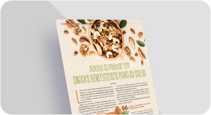 Suplemento Especial dulces y snacks Deleite su paladar con SNACKS BENEFICIOSOS PARA SU SALUD Por Abasto a base de una alimentación sana puede incluir desayunos, veces al día. Sin embargo, dónde y cuándo se comen esos almuerzos y cenas nutritivas, pero igual de importantes snacks puede variar entre estar de viaje o en el sofá, desde el son los snacks entre horas. Independientemente de cuándo amanecer hasta después de acostarse. o dónde meriende, fomente unos hábitos alimentarios Casi un tercio (30%) de los encuestados consume snacks más saludables con snacks nutritivos que le ayuden a mientras está en la cama, considerándolo su lugar favorito Lsobrellevar el día. para merendar. Sin embargo, sólo el 35% de sus elecciones de Según una encuesta en línea realizada entre 1,000 snacks se consideran saludables. estadounidenses mayores de 18 años en todo EEUU por Nutrirse durante los días ajetreados puede ser fácil con una Wakefield Research en nombre de la American Pecan opción como las nueces. Promotion Board, a los estadounidenses les encantan los snacks, y recurren a ellos un promedio de tres %de los consumidores de snacks asas 66 disfrutan de las nueces ssttadad es tes too uecuec NN d Boar n o ti Según la encuesta, el 66% de los o m o Pr ecan P can ri e Am l e d a esí rt o c a et Rec s consumidores de snacks disfrutan de las Tiempo de preparación 40 minuto Tiempo de cocción 35 minutos nueces por sí solas y el 58% las comen como 8 parte de una mezcla de frutos secos. iones Rac Si usted se encuentra entre el 50% que 4 tazas de mitades de nuez cruda busca un snack a última hora de la tarde, • 2 1/ liva o aceite de nueces puede recurrir a soluciones nutritivas y saciantes • 2 cucharaditas de aceite de o • 1 cucharadita de sal marina en escamas para satisfacer los antojos vespertinos sin sentir culpa. Con un crujido agradable, una cremosidad reconfortante y . una masticación satisfactoria, las nueces son el fruto seco e el horno a 300 F 1. Precalient e horno y hornéelas que pueden darle un empujón a su rutina tanto con un sabor 2. Coloque las nueces en una bandeja d s. delicioso como con una nutrición basada en plantas. o t nu i m 15 e t n a r du cle las nueces tibias con el Sólo un puñado de nueces -alrededor de 19 unidades- , mez e al calor ent 3. En un bol resist más sal de granos proporciona una buena fuente de 昀椀bra, tiamina y zinc y una los aplastando marina, sal la y oliva de e aceit orea. excelente fuente de cobre y manganeso, un mineral esencial grandes con los dedos mientras las espolv o las nueces en la bandeja del horno en una para el metabolismo y la salud ósea. También aportan una 4. Coloque de nuev e én ligerament os, o hasta que est mezcla de proteínas y grasas buenas -18 gramos de grasa sola capa y hornéelas 20 minut eja. áquelas del horno y déjelas enfriar en la band insaturada, incluido el ácido oleico, y sólo 2 gramos de grasa doradas y secas. S insaturada- que le ayudarán a mantenerse saciado y con energía durante todo el día. Como ventaja añadida, su versatilidad y su per昀椀l fácil de emparejar las convierten en un ingrediente perfecto en recetas 1414 MMAAYYOO//JJUUNNIIO 20O 20224 - 4 - AABABASSTTOO..CCOMOM
