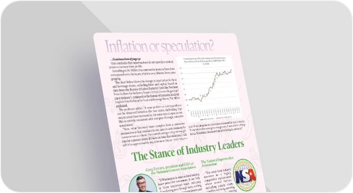 In昀氀ation or speculation? ...Continuation of page 30 that concludes that supermarkets do not speculate on food prices to increase their pro昀椀ts. According to Dr. Miller, it is common for items to have their costs passed on to the buyer, which is very di昀昀erent from price gouging. “吀栀e chart below shows the change in input prices for food and beverage stores, excluding labor and capital, based on data from the Bureau of Labor Statistics' Satellite Producer Price Indices for Industry Inputs (https://www.bls.gov/ppi/ input-indexes/), compared to the Bureau of Economic Analysis' Implicit Price De昀氀ator for Food and Beverage Stores,” Dr. Miller explained. 吀栀e professor added, “A near-perfect 1:1 correspondence can be observed between the two series, indicating that output prices have increased at the same rate as input prices. 吀栀is is entirely consistent with cost pass-through, not price speculation.” “Now, what becomes more complex from a consumer perspective is that retailers do not pass on cost increases to 0.27. Now, imagine my costs have increased by 25% to $12.50. consumers on a 1:1 basis. For example, using a 27% gross margin To maintain the same gross margin rate, I now need to charge rate for a grocery store, if I have an item that costs $10, I will $17.12. 吀栀erefore, I increased my price by $4.62, not $2.50.” sell it for approximately $13.70 because ($13.70 - $10) / $13.70 = The Stance of Industry Leaders Greg Ferrara, president and CEO of The National Supermarket the National Grocers Association. Association: “If Washington is serious about helping “The retail food industry lower prices for consumers, it can help operates in a highly in three important ways: reducing competitive environment skyrocketing pass-through rates, curbing where several factors, excessive and burdensome regulations, and including supply chain enforcing antitrust laws like the Robinson- variables and rising operating Patman Act that enhance price competition costs, influence pricing among retailers, regardless of size or location.” decisions. Accusations of price gouging overlook the complexity of Leslie G. Sarasin, president and CEO of FMI-Food these factors and the e昀昀orts we make to mitigate Industry Association. the impact of costs on consumers.” “Rather than pointing 昀椀ngers and proposing Julie Anna Potts, president impractical policy solutions that could create and CEO of The Meat more problems than they solve, both for Institute: consumers and for a food industry already operating on razor-thin margins, the most “Consumers have been e昀昀ective way to provide a昀昀ordable food a昀昀ected by higher prices due to American families is to address the key to inflation on everything drivers of food price volatility. Some factors from utilities to rent to cars, include volatile energy prices, a spike in severe and not just at the grocery store. weather events related to climate change, and A federal ban on price gouging other persistent supply chain challenges.” does not address the real causes of in昀氀ation.” 3232 NNOOVVEEMMBBEERR/ D/ DECECEEMMBBEER 2R 200224 4 AABBAASSTOTO..CCOOMM