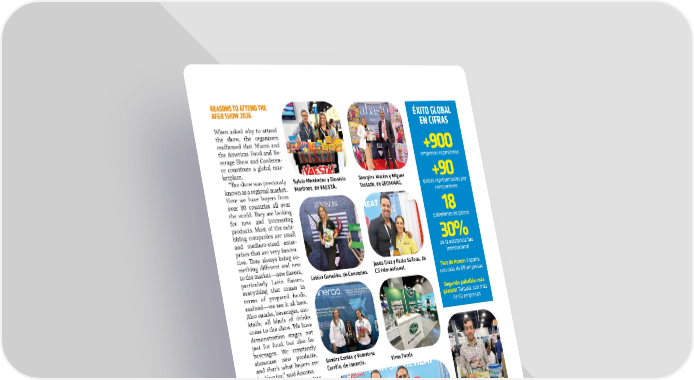 ABASTO.COM NOVEMBER / DECEMBER 2025�83 ÉXITO GLOBAL EN CIFRAS +900 empresas expositoras +90 países representados por compradores 18 pabellones de países 30% de la asistencia fue internacional País de honor: España, con más de 69 empresas Segundo pabellón más grande: Turquía, con más de 50 empresas REASONS TO ATTEND THE AF&B SHOW 2026 When asked why to attend the show, the organizers reafrmed that Miami and the Americas Food and Be- verage Show and Conferen- ce constitute a global mar- ketplace. “Te show was previously known as a regional market. Here we have buyers from over 90 countries all over the world. Tey are looking for new and interesting products. Most of the exhi- biting companies are small and medium-sized enter- prises that are very innova- tive. Tey always bring so- mething diferent and new to the market—new favors, particularly Latin favors, everything that comes in terms of prepared foods, seafood—we see it all here. Also snacks, beverages, coc- ktails; all kinds of drinks come to the show. We have demonstration stages not just for food, but also for beverages. We constantly showcase new products, and that’s what buyers are looking for,” said Ancona. Attending the Americas Food and Beverage Show and Conference 2026 means fnding something new, di- ferent, interesting—some- thing new to bring to the market, for the world to enjoy, and to introduce it to the world. Plus, it is a great trade show to come and eat and drink. Guillermo Montiel, Marco Pacheco y Gabriel Porciani, de Arcor. Jesús Díaz y Paola Salinas, de CS International. Vima Foods Guillermo Corona y Luis Alfonso García, de Salsa Huichol. Georgina Macías y Miguel Tostado, de GEOMMAG. Leticia González, de Conzeptos. Johnny Hwang y equipo de Pocas International. Sandra Cortés y Valentina Carrillo, de Innercia. Global Trade Bridge Corp Sylvia Menéndez y Dionisio Martínez, de YAESTÁ.