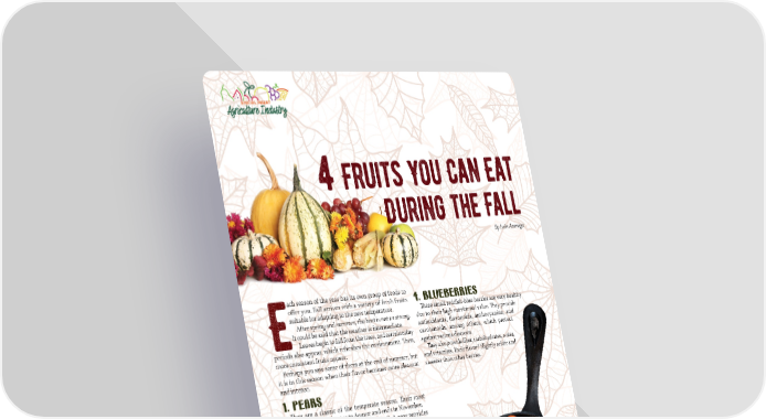 4 Fruits You Can Eat During the Fall By Iván Aranaga ach season of the year has its own group of foods to o昀昀er you. Fall arrives with a variety of fresh fruits 4. BLUEBERRIES suitable for adapting to the new temperature. 吀栀ese small reddish-blue berries are very healthy After spring and summer, the heat is not as strong. due to their high nutritional value. 吀栀ey provide It could be said that the weather is intermediate. antioxidants, 昀氀avonoids, anthocyanins, and ELeaves begin to fall from the trees, and certain rainy carotenoids, among others, which protect periods also appear, which refreshes the environment. 吀栀en, against various diseases. more consistent fruits appear. 吀栀ey also provide 昀椀ber, carbohydrates, water, Perhaps you saw some of them at the end of summer, but and vitamins. 吀栀eir 昀氀avor? Slightly acidic and it is in this season when their 昀氀avor becomes more pleasant sweeter than other berries. and intense. 1. PEARS 吀栀ey are a classic of the temperate season. 吀栀eir most enjoyable moment begins in August and ends in November. 吀栀ey are full of nutrients and vitamin C. A pear provides you with 12% of your daily requirements, in addition to other vitamin substances and 昀椀ber. 吀栀ere are many varieties, but the Asian one is the most popular in autumn when it takes on a beautiful yellow color. 2. FIGS 吀栀ese fruits from the 昀椀g tree are equally delicious and nutritious. 吀栀ey provide you with vitamin A, C, and minerals like potassium. 吀栀ey also have a lot of 昀椀ber and natural sugars, which injects a lot of energy into you. To eat them fresh, take advantage of this season. 3. APPLES Apples are some of the most abundant fruits in this season. Inevitably, they will tempt you because they are very tasty. Both the red and yellow ones as well as the green ones. Moreover, they are nutritious, loaded with 昀椀ber and vitamin C, and it is believed that they o昀昀er some neurological bene昀椀ts. 1616 SSEEPPTTEEMMBBEERR//OOCCTTOOBBEERR 22002244 -- AABBAASSTTO.CO.COOMM
