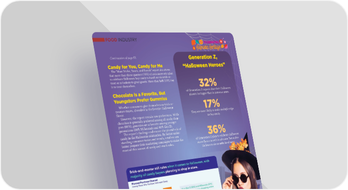 FOOD INDUSTRY CELEBRATING Hispanic Heritage Continuation of page 68. Generation Z, Candy for You, Candy for Me “Halloween Heroes” The “Mars Tricks, Treats, and Trends” report also shows that more than three-quarters (76%) of consumers who plan to celebrate Halloween buy candy to hand out via trick-or- treat or in baskets to greet guests. More than half (53%) buy it to treat themselves. 32% Chocolate is a Favorite, But of Generation Z expects that their Halloween Youngsters Prefer Gummies plansto be bigger than in previous years. Whether consumers give themselves or trick-or- treaters treats, chocolate is the favorite Halloween 17% flavor. They are more likely to make multiple trips However, the report reveals new preferences. While to buy candy. chocolate is generally preferred among all candy shop- pers (88%), gummies are a favorite among younger generations (56% Millennials and 60% Gen Z). The report's findings underscore the pivotal role of candy in the Halloween celebration. By better under- 36% standing consumer tastes and trends, retailers can better prepare their marketing campaigns to make the of Generation Z plan to celebrate Halloween most of this season of candy and snack sales. more than a month in advance. Some plan Halloween six months in advance. 7070 SSEEPPTTIIEEMBRMBREE//OOCCTTUUBRBREE 2 2002244 AABBAASSTOTO..CCOOMM