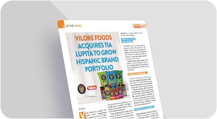 16�SEPTEMBER / OCTOBER 2025�ABASTO.COM distribution to major retailers such as Whole Foods and Target. FOUNDER WELCOMES VILORE FOODS PARTNERSHIP “I’m thrilled that Tia Lupita Foods is joining the Vilore Foods family,” said Saldivar. “Vilore Foods understands the cultural roots that drive our brand and has the reach and experience to take our products to even more shelves and kit- chens across the country.” Saldivar’s brand pays homage to his mother’s cherished family hot sauce re- cipe, blending tradition with innovative food oferings that meet modern dietary preferences. A STRATEGIC FIT FOR VILORE FOODS For Vilore Foods, based in San Antonio, Texas, the acquisition enhances its strate- gic footprint in the multicultural food seg- ment, where demand for natural, healthy, and authentic products continues to grow. Since its founding in 1982, Vilore Foods has specialized in importing, distributing, and developing Hispanic heritage brands. Te company represents household na- mes like La Costeña and Jumex and part- ners with giants like Procter & Gamble and Mead Johnson Nutrition to extend their market presence in the U.S. EXPANDING REACH AND CAPABILITIES With more than four decades of experien- ce, Vilore Foods operates a robust natio- nal distribution network, extensive retail partnerships, and an expanding digital presence. Te company provides supply chain expertise, secure storage, and relia- ble delivery—key advantages it plans to leverage to grow Tia Lupita Foods. “Tia Lupita is an ideal complement to our mission of celebrating heritage and favor,” said Vargas. “Tis partnership allows us to diversify while staying true to the roots that make Hispanic food be- loved by millions.” Now under Vilore Foods’ umbrella, Tia Lupita is poised for accelerated growth, tapping into Vilore’s scale and expertise. Consumers can expect greater availability of Tia Lupita products across the U.S. For more information on Vilore Foods and its brand portfolio, visit www.vilore. com. To explore Tia Lupita Foods’ ofe- rings, visit www.tialupitafoods.com. buting and championing Hispanic food brands in the U.S. market,” said Edgar R. Vargas, Vilore Foods’ Director of Grow- th and Brand Development. Vargas emphasized the rising interest among U.S. households in authentic, cul- turally rooted foods. He noted that Tia Lu- pita’s momentum positioned it as a prime partner for Vilore’s expansion eforts. TIA LUPITA’S RISE AND SHARK TANK BOOST Founded by Hector Saldivar, Tia Lupi- ta Foods earned national attention in 2023 after its feature on ABC’s “Shark Tank.” Saldivar secured a deal with Ke- vin O’Leary, known as “Mr. Wonderful,” who recognized the brand’s potential to deliver healthier, authentic Mexican fa- vors to a broad audience. “From day one, I believed in your mission to bring healthier, authentic Mexican favors to the table, and you delivered,” O’Leary said in a statement. “Tis acquisition by Vilore Foods is a perfect match and a powerful validation of everything you’ve worked for.” Tia Lupita’s growth trajectory con- tinued post-”Shark Tank,” expanding VILORE FOODS ACQUIRES TIA LUPITA TO GROW HISPANIC BRAND PORTFOLIO By Abasto V ilore Foods has acquired Tia Lupita Foods, strengthening its position in the U.S. Hispa- nic food market and entering the boo- ming natural foods space. Te strategic purchase expands Vilore Foods’ portfo- lio, which includes La Costeña, Jumex, and Totis, adding a fast-growing brand known for its bold Mexican favors and clean-label products. The acquisition, announced Monday, reinforces Vilore Foods’ commitment to offering culturally connected brands that re- sonate with modern U.S. consumers seeking authenticity and healthier options. VILORE FOODS TARGETS U.S. NATURAL FOODS GROWTH With the addition of Tia Lupita Foods, Vilore Foods officially steps into the natural foods sector. Tia Lupita offers gluten-free, non- GMO, and preservative-free items, including its popular hot sauces, grain-free cactus tor- tilla chips, and Mexican Chili Crunch. “Tis acquisition signifes Vilore Foods’ powerhouse expertise in distri- IN THE NEWS