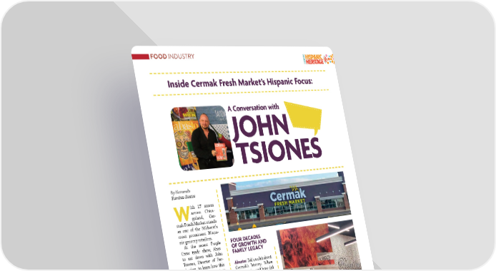 46�SEPTEMBER / OCTOBER 2025�ABASTO.COM By Hernando Ramírez-Santos W ith 17 stores across Chica- goland, Cer- mak Fresh Market stands as one of the Midwest’s most prominent Hispa- nic grocery retailers. At the recent Purple Crow trade show, Abas- to sat down with John Tsiones, Director of Pur- chasing, to learn how this family-run business stays ahead in serving one of the fastest-growing consumer segments in the U.S. A CHAIN ROOTED IN HISPANIC CULTURE Abasto: Seventeen stores in Chicago? Tat’s quite a footprint. It sounds like your customers are largely Hispanic. John Tsiones: Absolu- tely. Around 75% of our customers are Hispanic, and that’s who we cater to. Te energy here at the show refects our sto- res—it’s a perfect ft. Inside Cermak Fresh Market’s Hispanic Focus: JOHN TSIONES A Conversation with FOUR DECADES OF GROWTH AND FAMILY LEGACY Abasto: Tell us a bit about Cermak’s history. When did it begin, and how did you get involved? John Tsiones: Cermak is a family business that started about 40 years ago. Two families laun- ched the company, and it’s now grown into the Mid- west’s largest family-ow- ned grocery chain focused on Hispanic consumers. Tey’re second-genera- tion immigrants, and I’ve known them personally for 15 years. I ofcially joi- ned three years ago, and we’re working to take the company to the next level. Continues on page 48... FOOD INDUSTRY