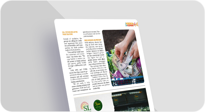 ABASTO.COM�SEPTEMBER / OCTOBER 2025�15 CALL FOR FAIR AND LASTING TRADE SOLUTIONS Instead of escalation, the groups are calling for a trila- teral agreement that provi- des predictability and trans- parency for fresh produce trade in North America. “Free and fair trade bene- fts consumers and econo- mies,” the letter says. “We urge leaders to restore sta- ble access to fresh produce and protect public health through collaborative poli- cies.” Both IFPA and CPMA stated that they support go- vernment eforts to resolve disputes and will continue to ofer technical assistance during negotiations. “We are ready to help create a lasting solution that guarantees fresh food year- round and strengthens our agricultural economies,” Bur- ns and Lemaire said in their joint statement. PRICE INCREASES ADD PRESSURE With infation already dri- ving up food costs across the continent, new tarifs on fresh produce would put further pressure on family budgets. Consumer groups are also expressing concern that higher fruit and ve- getable prices could afect public health campaigns promoting nutritious diets. Te warning from indus- try leaders comes at a cru- cial time, as upcoming trila- teral meetings will discuss agricultural trade tensions. Analysts believe that ta- rifs on fresh produce will be a key test for trade coo- peration between the three nations under new political leadership.