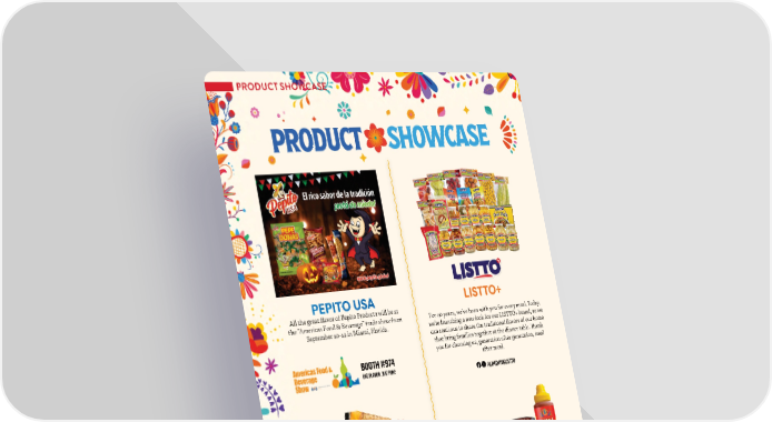 La Moderna We are proud to bring the authentic favor of Mexico to the United States. Our pasta, made with quality ingredi- ents and a lasting tradition, transforms every dish into an experience full of history and favor. Authentic Mexican favor in every bite! WWW.LAMODERNAUSA.COM | TEL: +1 (817) 506-3535 PEPITO USA All the great favor of Pepito Products will be at the “Americas Food & Beverage” trade show from September 10-12 in Miami, Florida. BOOTH #974 BIG FLAVOR, BIG FUN! Lago de Chapala Chili Crisp and Chamoy from Lado de Chapala take your meals to the next level. Enjoy the perfect blend of crunch and spice with Chili Crisp in Original, Seeds, and Cranberry, or the irresistible sweet-and-sour kick of our Chamoy. Add more favor to every bite! PRODUCT SHOWCASE PRODUCT SHOWCASE 10�SEPTEMBER / OCTOBER 2025�ABASTO.COM LISTTO+ For 40 years, we’ve been with you for every meal. Today, we’re launching a new look for our LISTTO+ brand, so we can continue to share the traditional favors of our home that bring families together at the dinner table. Tank you for choosing us, generation after generation, meal after meal. ALIMENTOSLISTTO