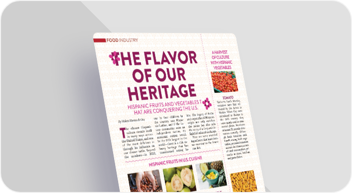 82�SEPTEMBER / OCTOBER 2025�ABASTO.COM TOMATO Native to South America, tomatoes were frst cul- tivated by the Aztecs in Mexico. When they were introduced to Europe in the 16th century, they were mainly used as orna- mental plants. Americans consume 31 pounds of to- matoes annually. Althou- gh fresh tomatoes rank fourth among fresh vege- tables, processed tomatoes account for three-quarters of total consumption, pri- marily in pizza, ketchup, and pasta dishes. FOOD INDUSTRY HISPANIC FRUITS AND VEGETABLES T HAT ARE CONQUERING THE U.S. THE FLAVOR OF OUR HERITAGE HISPANIC FRUITS IN U.S. CUISINE CACAO Chocolate, a key ingredient for major holidays like Valen- tine’s Day, Easter, Halloween, and Christmas, comes from cacao, a fruit native to Mexi- co. According to Statista, each American consumed 9 kilograms of chocolate in 2022. GUAVA Native to South America, guava was introduced to In- dia by the Portuguese in the 17th century. It’s grown in Mexico, Brazil, and Tailand. Te United States imported $25.8 million worth of guava products in 2023. PINEAPPLE Proudly South American, pine- apple originated between Brazil and Paraguay. The piña colada and sweet and sour chicken owe their flavor to this delicious fruit. In 2022, over 1.062 mi- llion tons of pineapple were sold in the United States. Costa Rica contributes more than 86% of the total volume, according to figures from AG Tools. VANILLA Mexico is the center of origin for vanilla and, for nearly three centuries, was the sole producer. However, Indonesia and Madagascar are now the world’s lea- ding producing countries. In May 2025, the U.S. im- ported $9.15 millions of vanilla, according to the Observatory of Economic Complexity (OEC). A HARVEST OF CULTURE WITH HISPANIC VEGETABLES By Violeta Montes de Oca T he vibrant Hispanic culture reveals itself in many ways across the United States, and one of the most delicious is through its influence on our dinner table. Beyond the numbers—in 2020, one in four children in the country was Hispa- nic/Latino, and if the La- tino community were an independent nation, its economic output would be the fifth largest in the world—there is a rich cu- linary heritage that has transformed eating ha- bits. The legacy of fruits and vegetables of Hispanic origin not only enriches the palate but also tells the story of a deep and de- lightful cultural exchange. Here are some ancestral ingredients that have beco- me essential in the Ameri- can diet. CORN Delicious roasted corn on the cob, cornbread, and irresistible esquites all pay homage to corn, native to southern Mexico. Native Americans brought this plant across the Mississi- ppi River. Living History Farms shares that corn grows on every continent except Antarctica, is found in more than 4,000 su- permarket products, and an 8-gallon bushel can sweeten about 400 cans of soda.