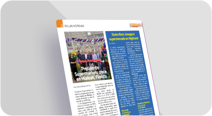 ���SEPTIEMBRE / OCTUBRE 2025�ABASTO.COM EN LAS NOTICIAS Por Violeta Montes de Oca Presidente Supermarkets ce- lebró la inauguración de una nueva tienda en Hialeah, su cuarta ubicación en esta ciu- dad del sur de Florida. A la inauguración, cele- brada el 4 de junio de 2025, asistieron autoridades lo- cales, entre ellas el comi- sionado del condado de Miami-Dade, Juan Carlos Bermúdez; la alcaldesa de Hialeah, Jacqueline Gar- cía-Roves; el concejal de Hialeah, Jesús Tundidor; el capitán del Departamento de Bomberos de Hialeah, Javier Hernández, y el asesor principal de Opor- tunidades Económicas de la alcaldesa Daniella Levi- ne-Cava, Manny Cid. “La ciudad de Hialeah siempre nos ha hecho sentir como en casa, y nos senti- mos honrados de invertir en una ciudad en la que hemos servido con orgullo a nues- tros clientes durante varios años”, afrmó Omar Rodrí- guez, propietario y fundador de Presidente Supermarkets. “Estamos muy agradecidos a la ciudad de Hialeah por acogernos siempre con los brazos abiertos y brindarnos la oportunidad de crecer en esta comunidad”. La nueva tienda, de 26,000 pies cuadrados, si- tuada en el 3750 W 18th Ave, cuenta con una cafete- ría y da empleo a aproxima- damente 80 personas. Con esta nueva tienda, Pre- sidente Supermarkets sigue consolidando su papel como socio de confanza de la comu- nidad, comprometido con el apoyo a las familias locales y el fomento de las relaciones den- tro de la vibrante comunidad latina del sur de Florida. Esta expansión estraté- gica está en sintonía con el compromiso continuo de Presidente Supermarkets de proporcionar a las diver- sas comunidades de Florida productos de alta calidad a precios competitivos. De sus 44 tiendas en Flori- da, la cadena de supermerca- dos familiar tiene 22 tiendas en el condado de Miami-Da- de, tres en el condado de Broward, 10 en el condado de Palm Beach y siete en el área de Orlando. Tienen previsto abrir dos tiendas más en el condado de Miami-Dade a fnales de 2025. Presidente Supermarkets crece en Hialeah, Florida Stater Bros. inaugura supermercado en Highland Por Abasto El nuevo supermercado Stater Bros. en Highland, localizado en el centro comercial Greenspot Cros- sings, abrió sus puertas al público el 25 de junio. Con más de 4,270 me- tros cuadrados, la tienda casi duplica el tamaño de la ubicación anterior, que sirvió a la comunidad por más de 45 años. El nuevo supermercado cuenta con departamen- tos de servicio completo de carnes, mariscos, pa- nadería y deli, además de estaciones de sushi fresco y frutas recién cortadas. “Las comunidades en cre- cimiento necesitan lugares donde los residentes puedan conseguir alimentos frescos y asequibles. Stater Bros. está orgulloso de respon- der a ese llamado,” afirmó Pete Van Helden, director ejecutivo de Stater Bros. UBICACIÓN ESTRATÉGICA Y OPCIONES CONVENIENTES Ubicado justo a la salida de la autopista 210 en la intersección con Greens- pot Road, el nuevo su- permercado Stater Bros. en Highland fue diseñado para ofrecer conveniencia a los compradores desde su llegada. Dentro de la tienda, los clientes con poco tiempo podrán elegir entre ali- mentos listos para cocinar como carnes marinadas, vegetales prelavados, champiñones rellenos y frutas frescas. La carne ha sido por años el sello de Stater Bros., y esta tienda no es la excep- ción. Los compradores en- contrarán cortes U.S.D.A. Choice, carne de res añeja- da en seco, pollo marinado y una amplia selección de chorizos y salchichas de es- tilo hispano. “Siempre hemos sido conocidos por nuestras carnes, y esta nueva tien- da eleva aún más esa oferta,” indicó un repre- sentante de la empresa. Como parte de su com- promiso comunitario, Sta- ter Bros. Charities entregó $30,000 a seis organiza- ciones sin fines de lucro de la región de Highland. PRESENCIA REGIONAL EN EL SUR DE CALIFORNIA Stater Bros. opera cerca de 170 tiendas en el sur de Ca- lifornia y emplea a más de 18,000 personas. El nuevo supermercado Stater Bros. en Highland representa una inversión estratégica para modernizar su red y fortalecer los vínculos con la comunidad. “Esta tienda representa cómo invertimos en nues- tros vecindarios,” concluyó Van Helden.