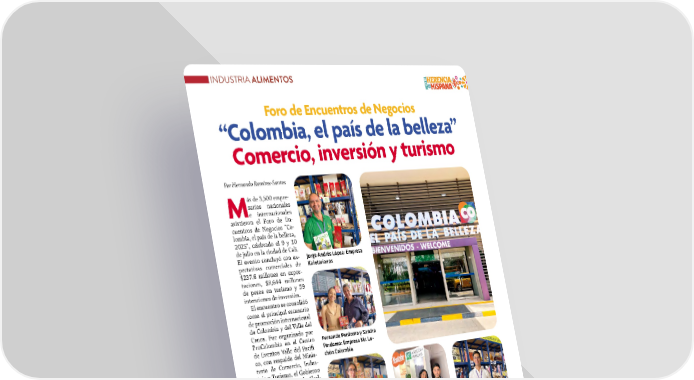 ���SEPTIEMBRE / OCTUBRE 2025�ABASTO.COM Por Hernando Ramírez-Santos M ás de 3,500 empre- sarios nacionales e internacionales asistieron el Foro de En- cuentros de Negocios “Co- lombia, el país de la belleza, 2025”, celebrado el 9 y 10 de julio en la ciudad de Cali. El evento concluyó con ex- pectativas comerciales de $237.6 millones en expor- taciones, $8,644 millones de pesos en turismo y 59 intenciones de inversión. El encuentro se consolidó como el principal escenario de promoción internacional de Colombia y del Valle del Cauca. Fue organizado por ProColombia en el Centro de Eventos Valle del Pacíf- co, con respaldo del Minis- terio de Comercio, Indus- tria y Turismo, el Gobierno del Valle del Cauca, la Alcal- día de Cali y la Cámara de Comercio de Cali. Además de promover las oportunidades comerciales con la celebración de más de 8,000 reuniones de ne- gocios, el foro posicionó al país suramericano como una plataforma estratégica para los negocios globales, resaltando el papel de las regiones y fortaleciendo el tejido productivo nacional. Una estrategia para transformar la economía regional En ese contexto, Carmen Caballero, presidenta de ProColombia, destacó que “con este Foro de Encuen- tros de Negocios, demos- Foro de Encuentros de Negocios “Colombia, el país de la belleza” Comercio, inversión y turismo tramos por qué Colombia es un país estratégico en el comercio exterior. Su co- nectividad, talento huma- no y vitalidad empresarial hicieron de este evento una experiencia transfor- madora para nuestras re- giones. Esta edición cum- plió con su promesa al país: mostramos nuestros territorios, conectamos Sigue en la página 68 oportunidades, moviliza- mos inversión y destaca- mos el poder exportador de Colombia”. Por su parte, la minis- tra de Comercio, Industria y Turismo, Diana Marcela Morales Rojas, destacó que este evento brindó opor- tunidades reales para que pequeñas y medianas em- presas accedan a mercados internacionales con pro- ductos y servicios de alto valor. “No se trata solo de exportar bienes, también promovemos el turismo y atraemos inversión hacia sectores sostenibles como la bioeconomía, la agroin- dustria y las energías lim- pias”, dijo. INDUSTRIA ALIMENTOS César Aponte: Empresa Orqui- dea Infusiones Fernando Perdomo y Sandra Perdomo: Empresa Mr. Le- chón Colombia Santiago González Dorado: Empresa Agrícola Himalaya Mario Fernando Paredes Muriel: Cámara de Comercio de Pasto Jorge Andrés López: Empresa Kafetarianos